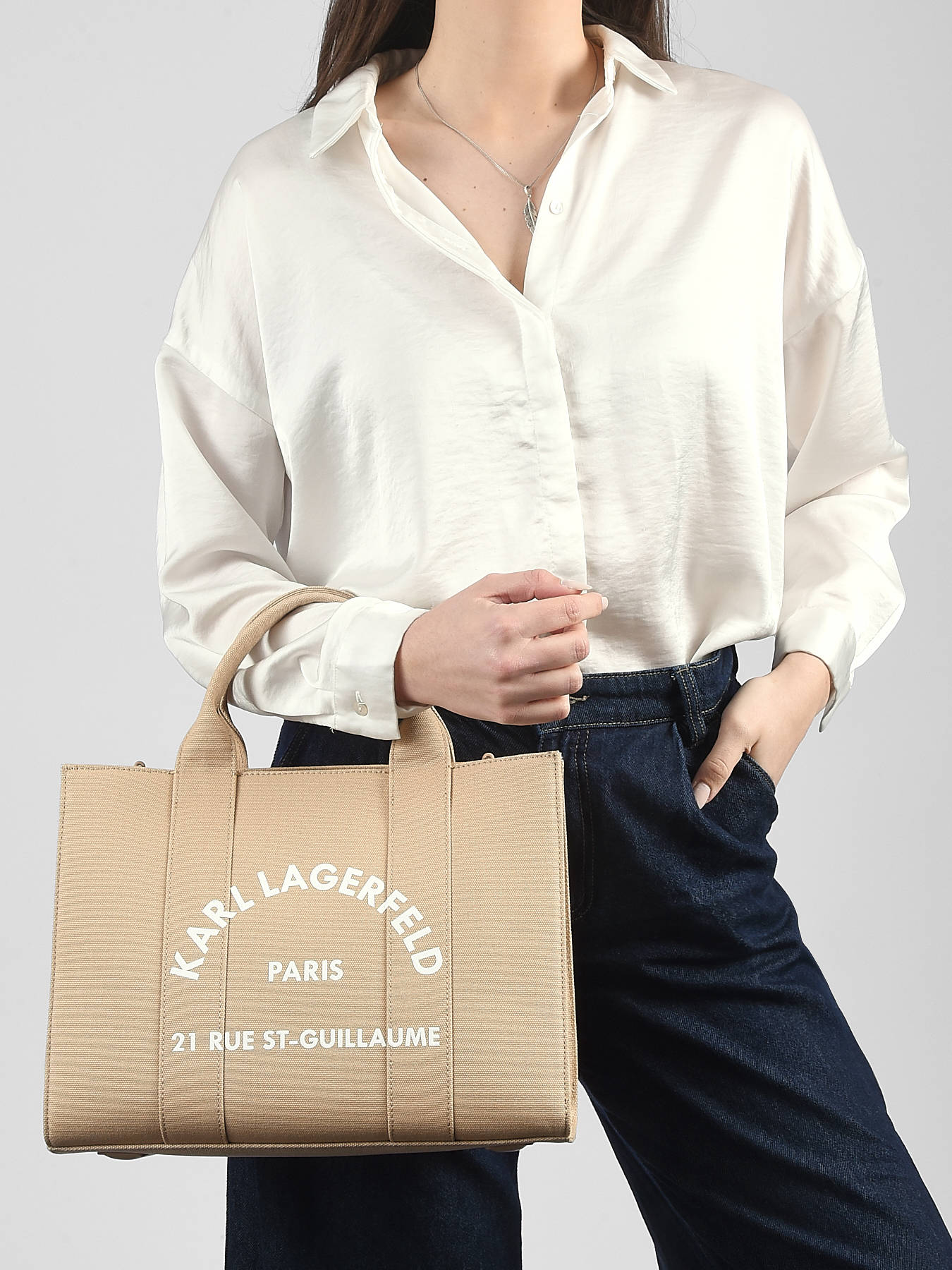 Le sac porté main KARL LAGERFELD en coton est un modèle élégant et polyvalent. Il offre un design moderne avec une fermeture zippée pour plus de sécurité. Sa bandoulière réglable et amovible permet un port à la main ou en bandoulière, s’adaptant ainsi à vos besoins et à votre style. À l’intérieur, il dispose de deux poches simples et d’un compartiment principal spacieux pour organiser vos essentiels. Ce sac est l’accessoire parfait pour une utilisation quotidienne, alliant praticité et sophistication, tout en mettant en avant l’univers distinctif de la marque KARL LAGERFELD.