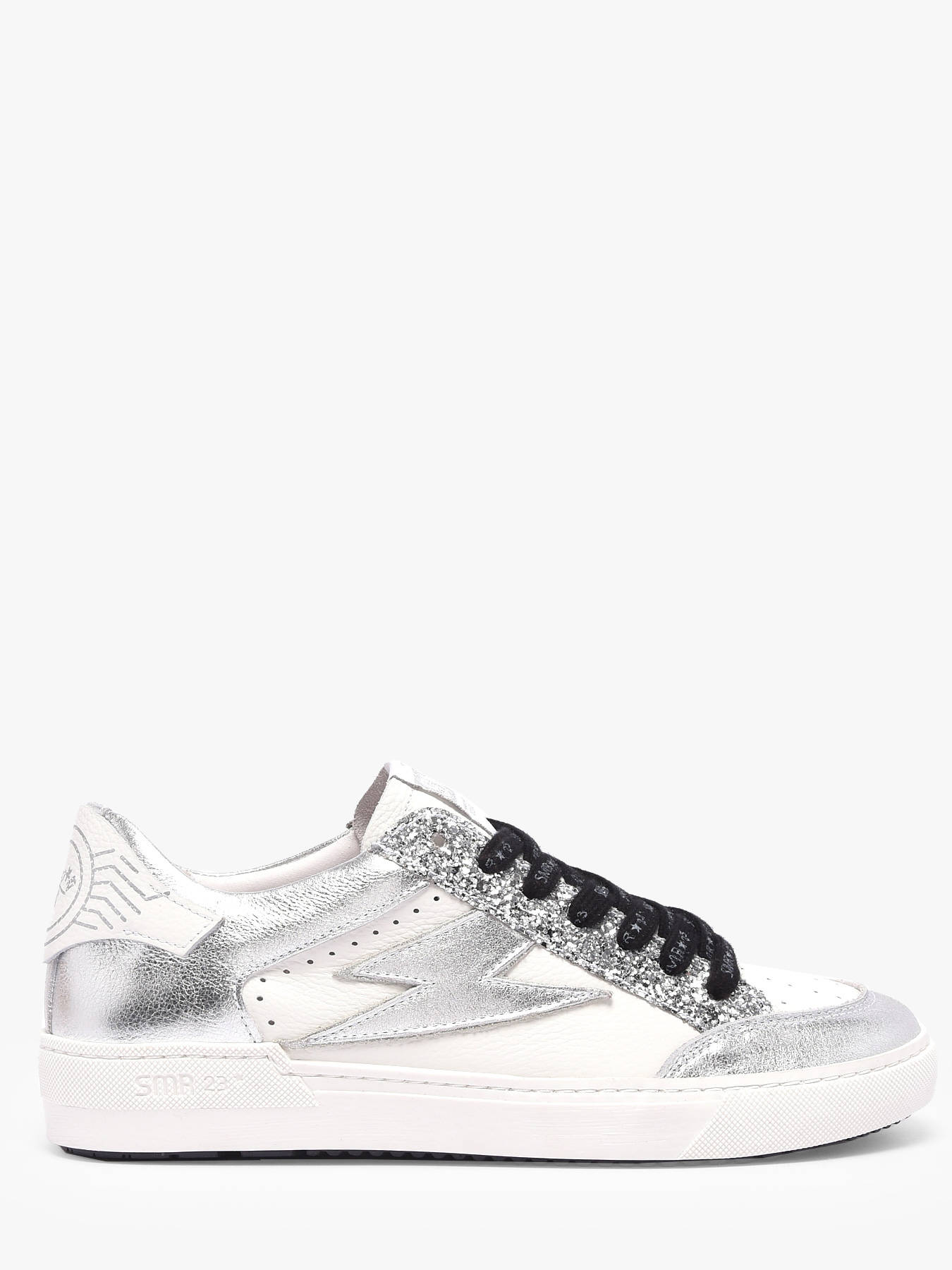 Les baskets Noubar de Semerdjian allient modernité, luminosité et style urbain pour un look chic au quotidien. Leur base en cuir blanc de qualité assure confort et durabilité, tandis que les nombreux détails en cuir métallisé argent apportent éclat et caractère à chaque pas. Les lacets noirs avec inscriptions SMR 23 ajoutent une touche distinctive et contemporaine qui fait ressortir l’identité unique de ce modèle. Polyvalentes et stylées, ces sneakers se portent facilement en ville ou lors de vos sorties, offrant confort, maintien et un design raffiné qui attire les regards. Les Noubar incarnent parfaitement l’alliance entre modernité et sophistication Semerdjian.